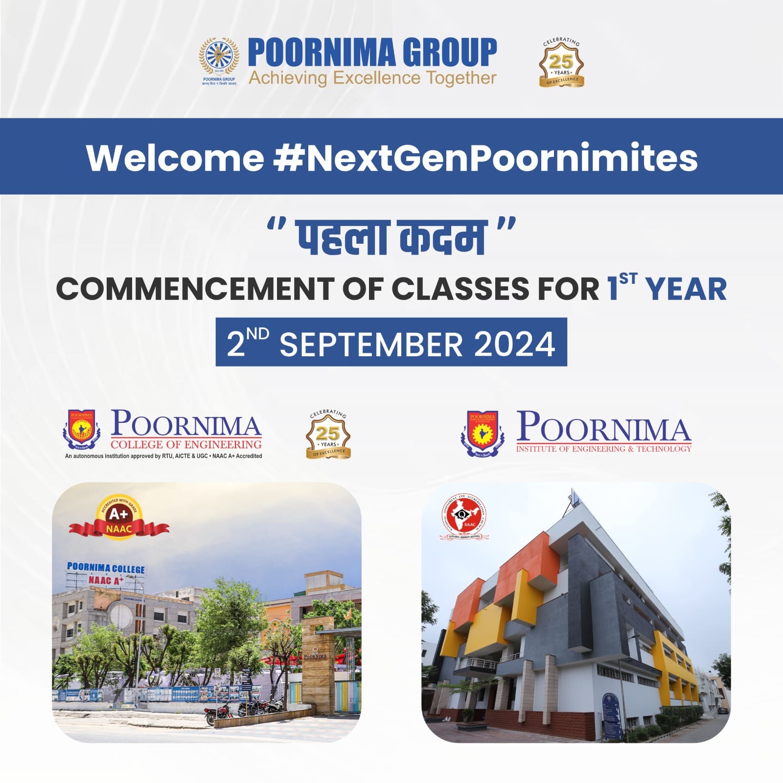 Born with a vision of creating an engineering college, Poornima College & Institute was established about 3 decades ago in the year 2000 in Jaipur (Rajasthan). With the primary aim to offer excellent professional & technical education to the students, Poornima College & Institute was created under the flagship of Shanti Education Society (SES) that engraved its existence in the year 1999, thereby registering itself under the Rajasthan Societies act.